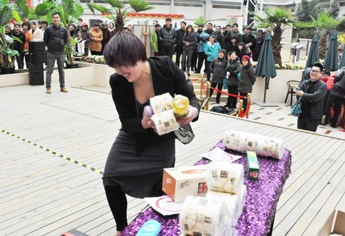 客戶們參觀完售樓中心并聽取置業顧問對樓盤的講解后,領取到參賽券,美女、辣媽們齊上陣,做著賽前的熱身準備,隨著一聲令下,她們火速跑到對面的禮品區,爭分奪秒的搶禮品,眼疾手快的美女、辣媽們出擊就是穩準狠,幾秒鐘的時間里,選手們每個人搶到的禮品數量都頗為可觀,賽場外親友團的加油吶喊聲也從未間斷,現場氣氛高漲。上午會展廣場的比賽讓美女們都意猶未盡,下午國際城的比賽精彩持續上演。活動在歡聲笑語中結束,選手們都滿載而歸,此次活動受到了女性客戶們的一致好評,也促進了當天的銷售。