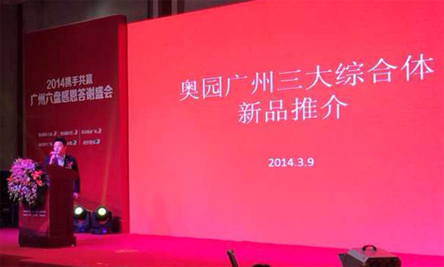 (2014年3月9日——廣州)“廣州奧園六盤感恩答謝盛會(huì)暨奧園三大綜合體新品發(fā)布”活動(dòng)在奧園高爾夫酒店隆重舉行,主辦方奧園集團(tuán)廣州區(qū)域公司邀約了中山大學(xué)的博士生導(dǎo)師林江教授發(fā)表關(guān)于“2014年房地產(chǎn)市場(chǎng)分析及預(yù)測(cè)”的主題演講,同時(shí)啟動(dòng)“奧園城市天地、奧園越時(shí)代、蘿崗?qiáng)W園廣場(chǎng)”三大綜合體的新品發(fā)布,當(dāng)天現(xiàn)場(chǎng)吸引了600多位業(yè)主、客戶前來(lái)參加。