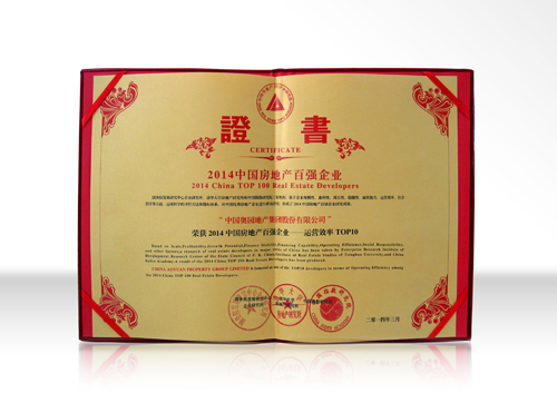 “2014中國房地產百強企業——運營效率TOP”證書