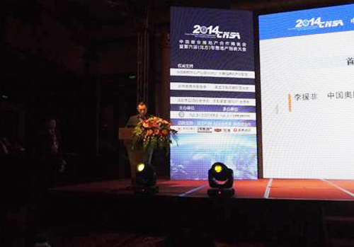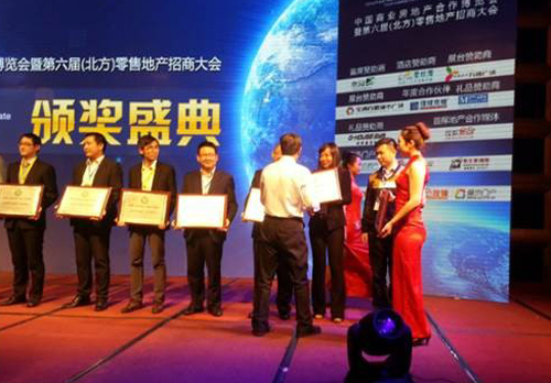 (2014年3月28日——沈陽)中國商業房地產合作博覽會暨中國北方購物中心聯盟第六屆零售地產招商大會在沈陽瑪麗蒂姆酒店隆重舉行,奧園集團總裁助理、沈陽片區公司總經理李援非先生、沈陽會展廣場商管公司等有關人員受邀出席本屆大會,沈陽奧園會展廣場項目榮獲本次大會頒發的“中國零售地產最佳新地標獎”大獎。