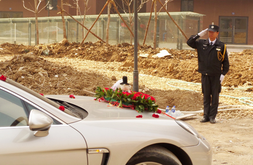 車場秩序維護員向婚車敬禮