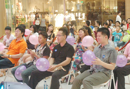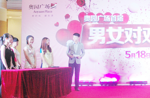 (2014年5月18日——廣州)520諧音“我愛你”,是現在年青男女對愛表達的日子,為了能夠給到年輕男女顧客互相認識、表達交友的機會,廣州番禺奧園廣場于5月18日舉辦大型的“男女對對碰”交友舞臺活動,吸引百余對單身男女報名參加。