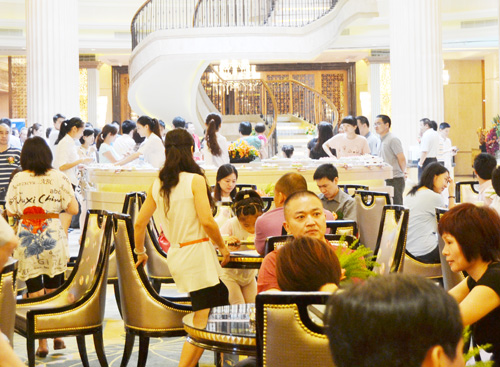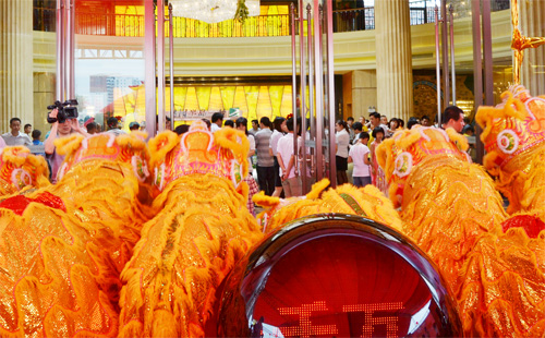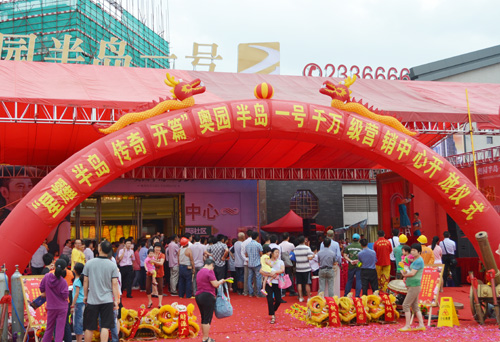 (2014年5月24日——梅州)飛舞的氣球、喜慶的鑼鼓、威武的南獅、熱烈的掌聲,梅州奧園半島一號銷售中心盛大開放!奧園集團梅州項目副總經理羅廣鷹先生、郭建明先生等與梅州市工商業聯合會、梅州市工商業聯合會、梅州·世界客商大會秘書處、梅州市芹洋半島品牌戰略發展區開發建設小組辦公室等各大協會機構一眾領導嘉賓一同出席了此次活動。當天上午,銷售中心內外可謂是人聲鼎沸、熱鬧非凡,場面異常火爆,大批意向客戶到訪、參觀,前來咨詢的客戶更是絡繹不絕。