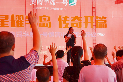 梅州奧園半島一號在活動當天特邀請港臺巨星黃安先生登臺表演,并獻唱了《新鴛鴦蝴蝶夢》、《東南西北風》等多首耳熟能詳的經典歌曲,現場人氣爆棚,歡呼聲此起彼伏,梅州人民拿出了前所未有的熱情來迎接這位港臺明星,在明星與觀眾互動環節中,黃安先生特意準備了禮物贈送給現場的朋友們。奧園藝術團在活動當天為觀眾獻上《貴妃醉酒》、《吉祥謠》、《快樂的跳吧》等眾多精彩的節目,給梅州市民帶來了美好的視聽享受!隨后,黃安先生來到銷售中心參觀沙盤,顧客們紛紛前來索取簽名、要求合照,氣氛火爆到至高點。眾多客戶表示強力看好奧園半島一號,紛紛當場繳納認籌金搶占自己的理想之家。