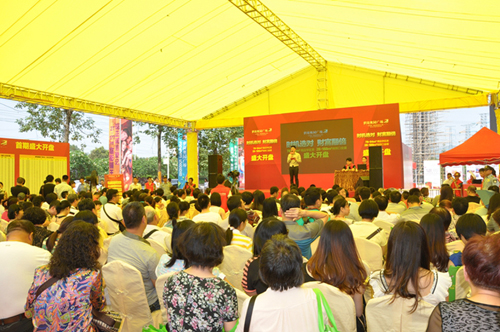 6月14日蘿崗奧園廣場借巴西世界杯熱浪開盤。當天早上8點鐘,蘿崗奧園廣場外的開創大道兩側早已排滿了車龍,銷售現場人頭攢動,聚集了近千名購房者。