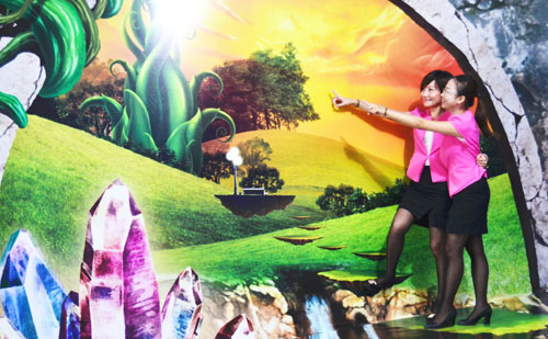 奧園3D魔幻藝術樣板房各路英豪在墻上呼之欲出,前來參觀的人們濟濟一堂、擺開pose,帶著哇塞的驚嘆聲和歡笑聲成為這里最美的音符,而不時躍動的閃光燈則成為獨特的標記。讓來訪者置身于金子滿地的富貴黃金屋、好萊塢場景般的欲望空間、22世紀的未來之家、跟著愛麗絲走進奇幻森林及美麗夢境、違反牛頓定律的盜夢空間、女孩喜歡的可愛教主……七大震撼視覺的3D主題,無不在昭示著這里是一處獨一無二的魔幻空間,謀殺了無數菲林。