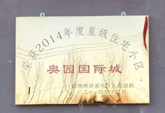沈陽奧園國際城榮獲“2014年度星級住宅小區”稱號