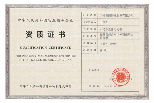?。?015年3月6日——廣州)近期,廣州奧園物業有限公司順利通過了國家住房和城鄉建設部嚴格評審,成功獲批“國家一級資質物業服務企業”資格。今后,奧園物業作為一級資質物業服務企業,可以承接各種類型物業管理項目,同時接管項目的面積將不再受到限制。這充分彰顯了奧園集團及旗下奧園物業的品牌企業形象和無形資產價值,對今后開拓市場、承接管理項目具有重大意義。