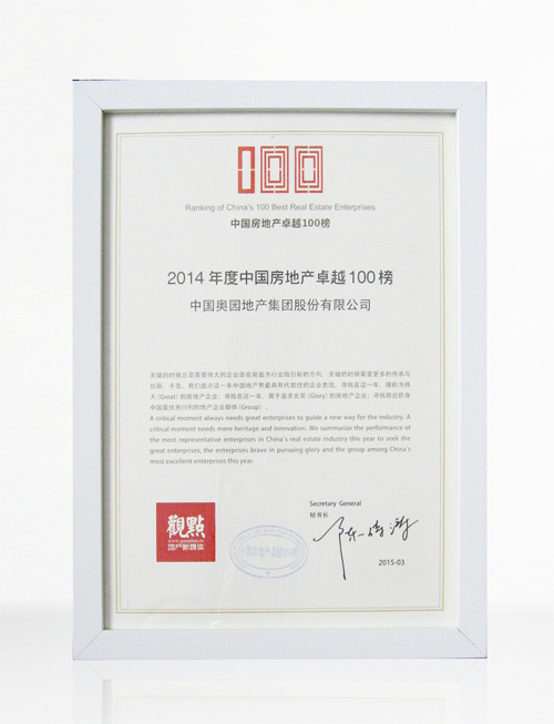 (2015年3月27日——北京)3月27日,在北京釣魚臺國賓館召開的“2015中國房地產百強企業研究成果發布會暨第十二屆中國房地產百強企業家峰會”,奧園榮獲“2015中國房地產百強企業”綜合實力第30名、“2015中國房地產百強企業運營效率TOP10”第5名,各項排名在2014年基礎上都獲得提升!