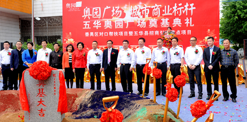 廣州市番禺區副區長戴友華、張力仁,政協副主席鄭葆紅,五華縣縣委副書記、縣長范宜軍,縣委常委、副縣長吳慶松,縣人大常委會副主任李啟洪,奧園集團黨委書記、總裁郭梓寧,首席財務官鐘平,集團總裁助理、商業集團總裁苗思華等領導出席了本次奠基典禮。