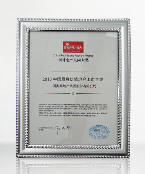 中國奧園地產集團榮獲“2015年度中國最具價值地產上市企業”榮譽