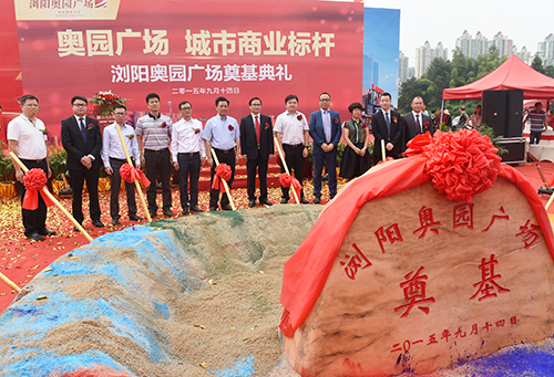 (2015年9月14日——瀏陽)9月14日,瀏陽奧園廣場舉行了隆重的奠基典禮,現場鑼鼓喧天,高朋滿座,禮炮齊鳴,一片喜慶。