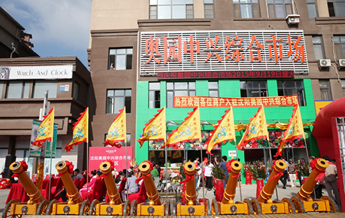 9時28分,奧園中興綜合市場開業慶典準時舉行,沈陽奧園項目公司總經理助理黃繼宗、陶超然,沈陽奧園物業公司總經理彭少良、沈陽奧園商管公司副總經理鄂丹玲、沈陽奧園項目公司工程部經理宗禹志列席參加。由沈彭少良總、鄂丹玲總為龍獅點睛,并進行“采青”,寓意財源滾滾來。