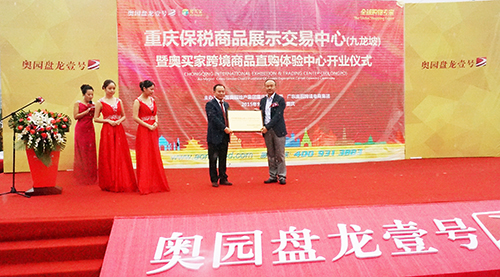(2015年9月26日——重慶)9月26日,“中國•重慶保稅商品展示交易中心”正式在奧園盤龍壹號授牌開業,九龍坡區區長石繼東親自為項目授牌。