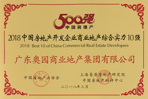 奧園商業地產集團榮膺“中國商業地產10強”等多項殊榮