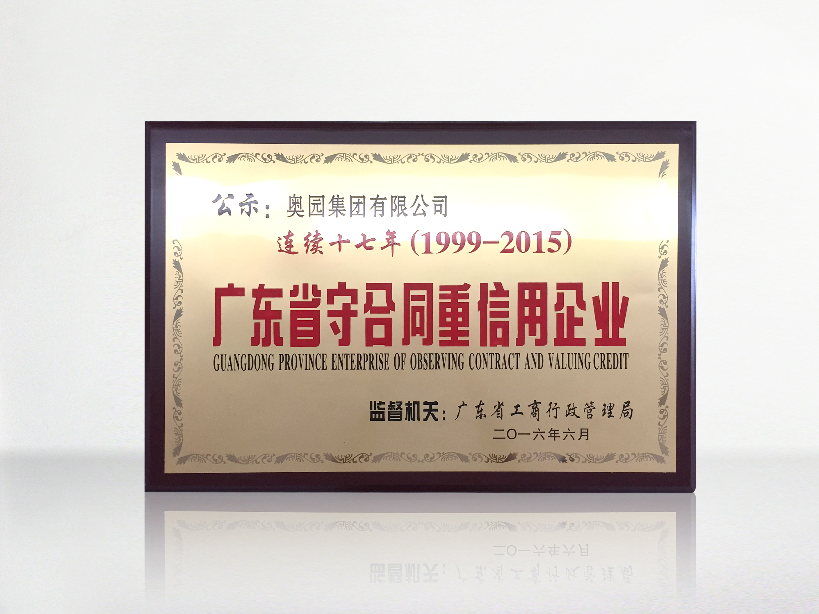 奧園連續十七年榮膺“廣東省守合同重信用企業”稱號