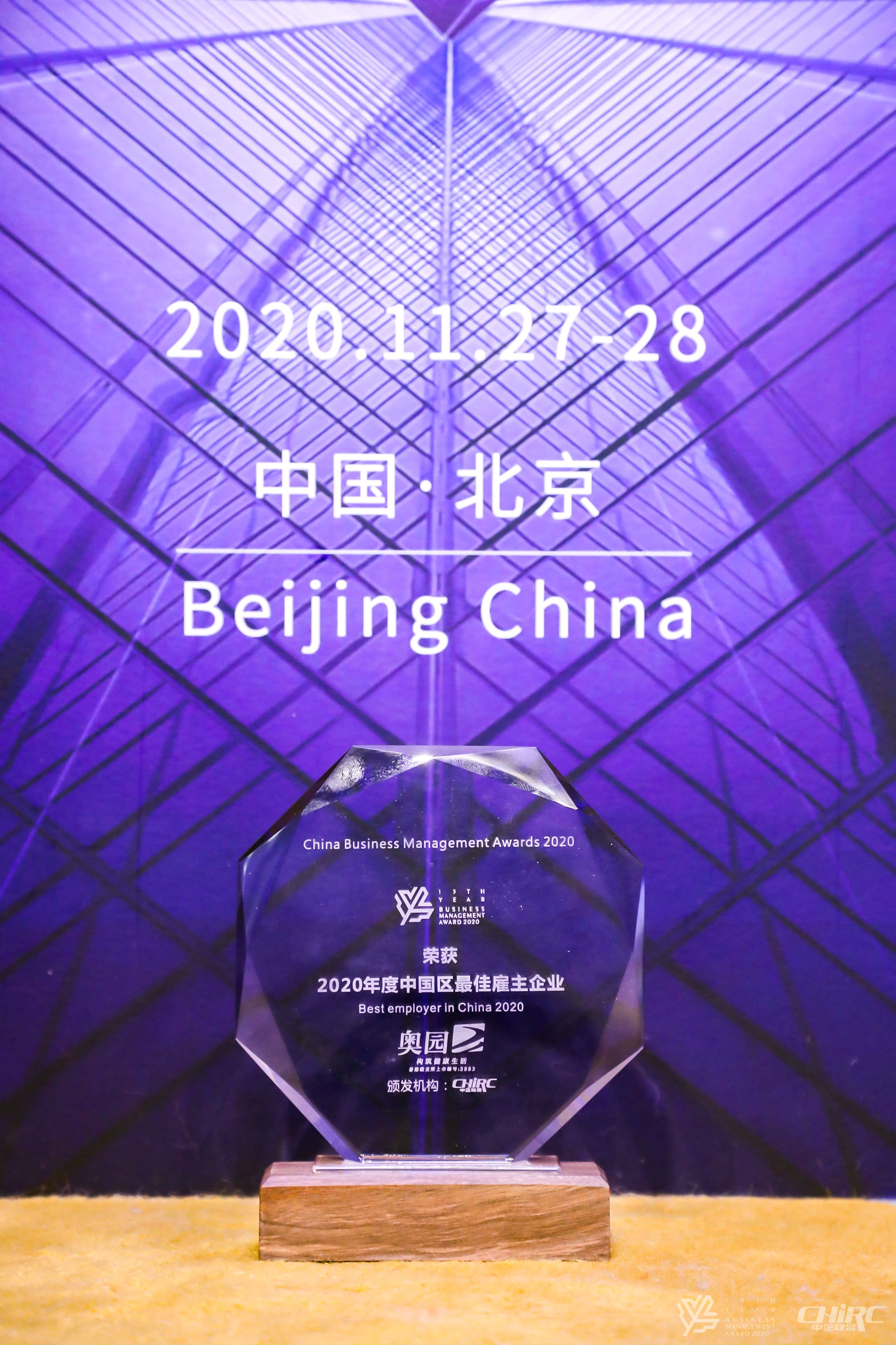 中國奧園集團獲頒“2020年度中國區最佳雇主企業”榮譽稱號