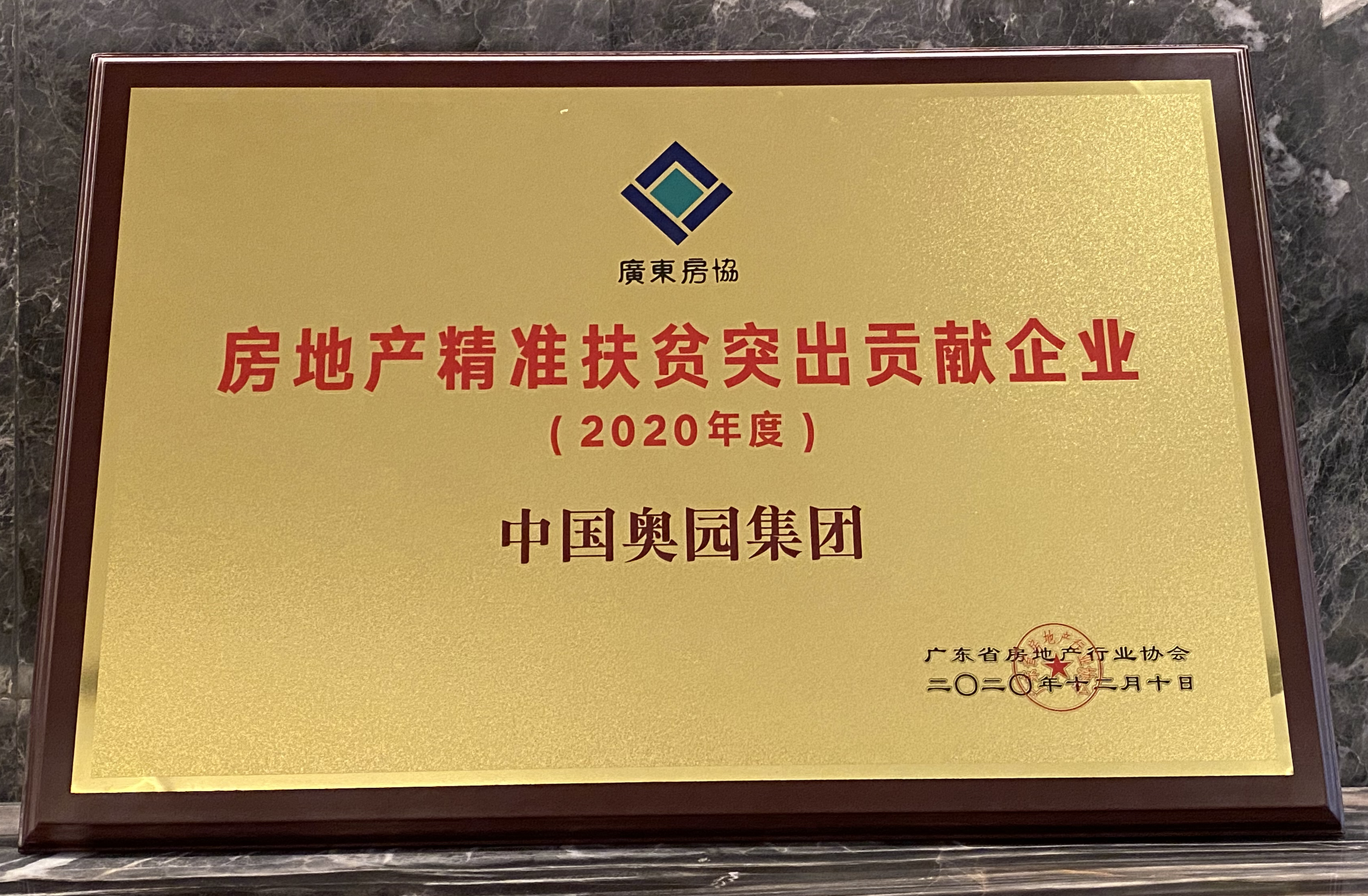 中國奧園攬獲“2020年度房地產精準扶貧突出貢獻企業”等三項大獎