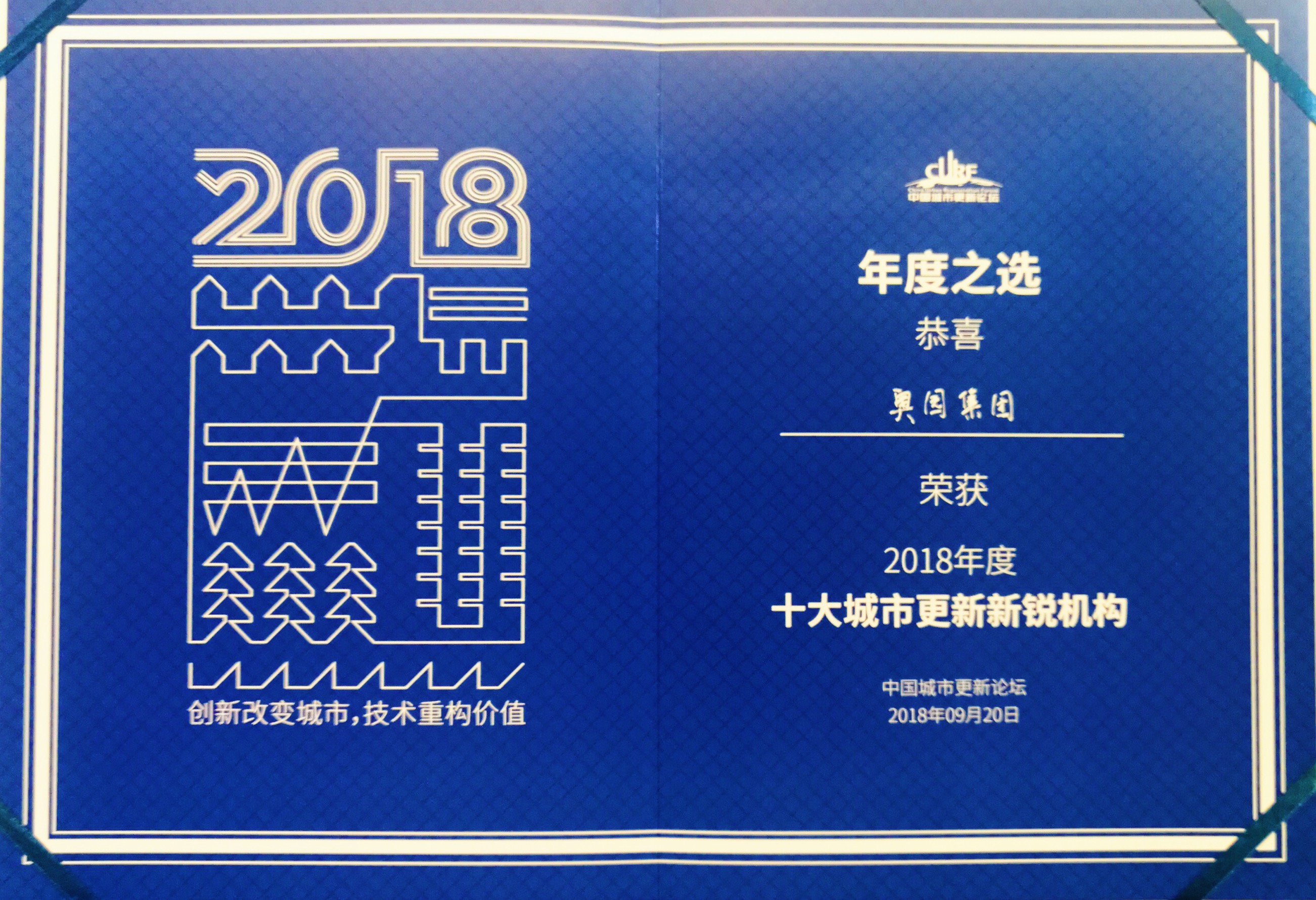 奧園榮膺“2018年度十大城市更新新銳機(jī)構(gòu)”