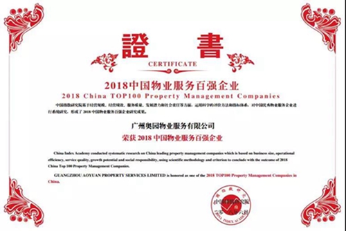 奧園榮登“2018年中國物業(yè)服務(wù)百強(qiáng)企業(yè)”第16位