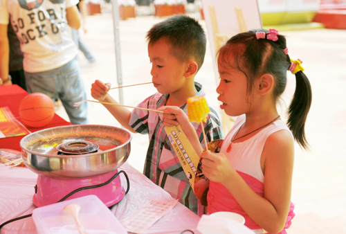 現(xiàn)場(chǎng)小朋友在品嘗美食