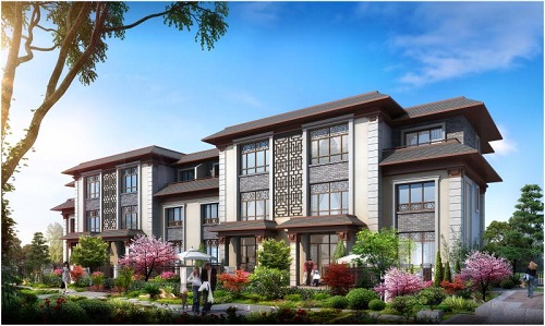 項目總體規劃82戶純別墅,分為10幢聯排,3幢疊加及1幢外圍商業。采用新中式建筑風格,彰顯了傳統文化精髓中典雅端莊的氣質,傳統文化所崇尚的藝術規律,秩序均衡;與項目周邊深厚的歷史底蘊、景觀資源相呼應,不僅滿足了人們對歷史的溫情,對浪漫的情懷,而且從視覺、質感、情智等功能方式賦予人們更加雅致的生活。